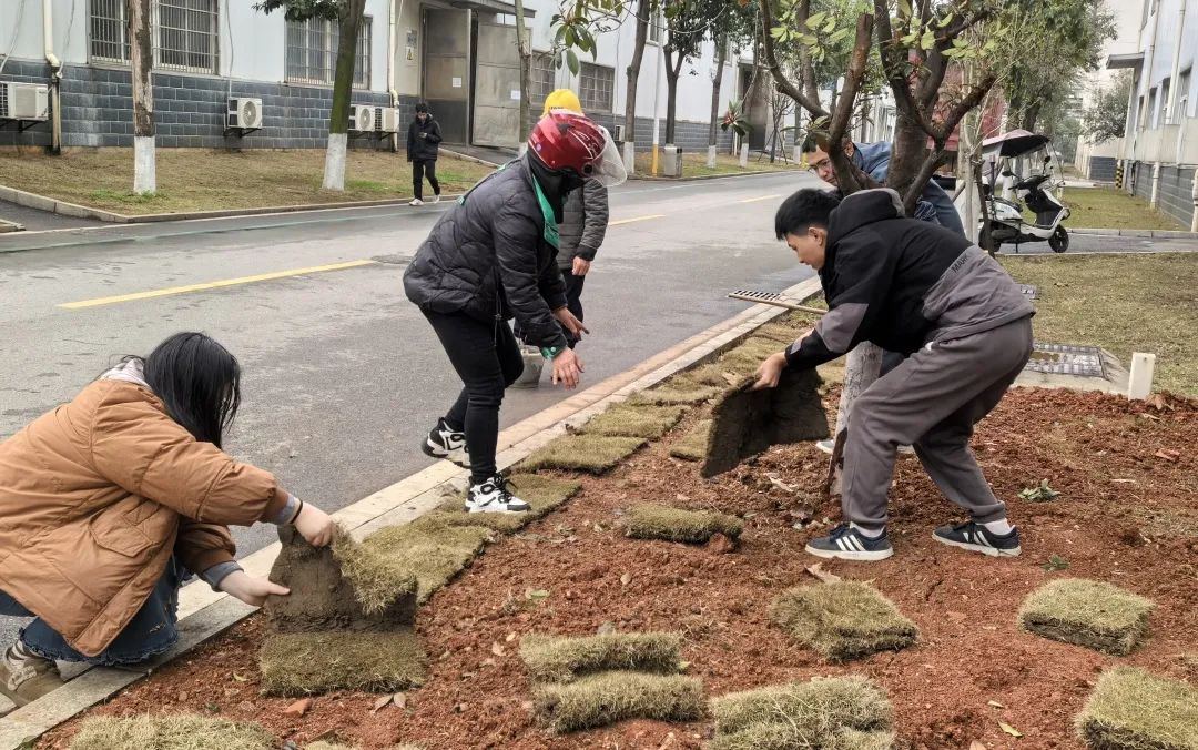 子公司金馳能源團委?踐行“綠水青山就是金山銀山”理念,組織青年在園區(qū)內(nèi)開展種植樹苗、鋪種草皮等志愿服務(wù)行動,團員青年們揮鍬挖坑、扶苗培土、提桶澆水,種植樟樹苗100余棵,為園區(qū)增添一抹新綠。職能部門聯(lián)合團支部也在園區(qū)開展了園區(qū)衛(wèi)生清理等志愿服務(wù)活動。